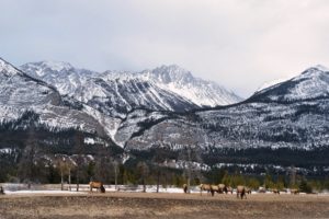 Vom Halfmoon Lake in die Rocky Mountains nach Jasper sind es knapp 400 Km. Das war unser längster Tagesabschnitt. Und er war nicht immer leicht zu fahren. Auf Dreiviertel der Strecke haben wir echtes Winterfahren mit Schnee erlebt. Uns entgegenkommende Trucks wirbelten so viel Schnee auf, dass wir einige Sekunden praktisch blind fuhren. Lenkrad festhalten und hoffen das alles gut geht. 100 Kilometer vor den Bergen wurde es dann besser. Zum Glück, denn so öffnete sich der Himmel und gab die Sicht auf die Berge frei. Die Rocky Mountains ähneln den Alpen und doch hat die Landschaft einen völlig anderen Charakter. Denn hier leben keine Menschen. Es gibt keine Dörfer und keine Bauern, die die Täler oder die Hangwiesen bewirtschaften würden. Dadurch wirkt es wilder, es ist tatsächlich unkultivierter und unberührter. Schön.