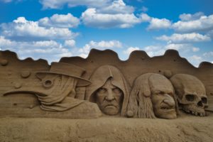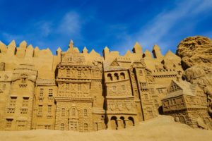 Alljährlich findet in Sondervik, unweit des Meeres ein Sandskulpturen Festival statt. In diesem Jahr wurde als Leitthema das Mittelalter vorgegeben. 40 Künstlerinnen und Künstler aus 12 Ländern haben dort in Sand ihre Ideen modelliert.
