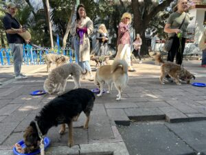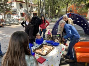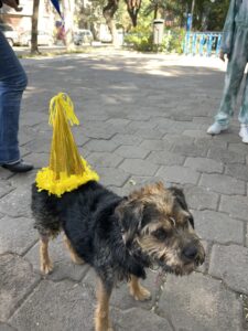 Beeindruckend, 10- 15 Hunde da, und noch ein paar mehr Menschen. Es gab Partyhüte, Süßigkeiten Tütchen, Luftballons und eine Geburtstagstorte.