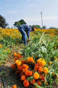 Die Cempasuchil ist eine endemische Blume aus der Familie der Tachetes. Die bedeutendste Art in Deutschland nennt man auch Studentenblume. Die Blume wird zu ca. 80% zum Gräber- und Altarschmuck verwendet. Andere gern verwendete Blumen sind der feuerrote Branschopf, verschiedene Chrysanthemen Arten , Gladiolen und weisse Garten-Levkoje.