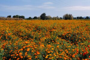 Die dominierende Farbe ist das Orange der Cempasuchil.
